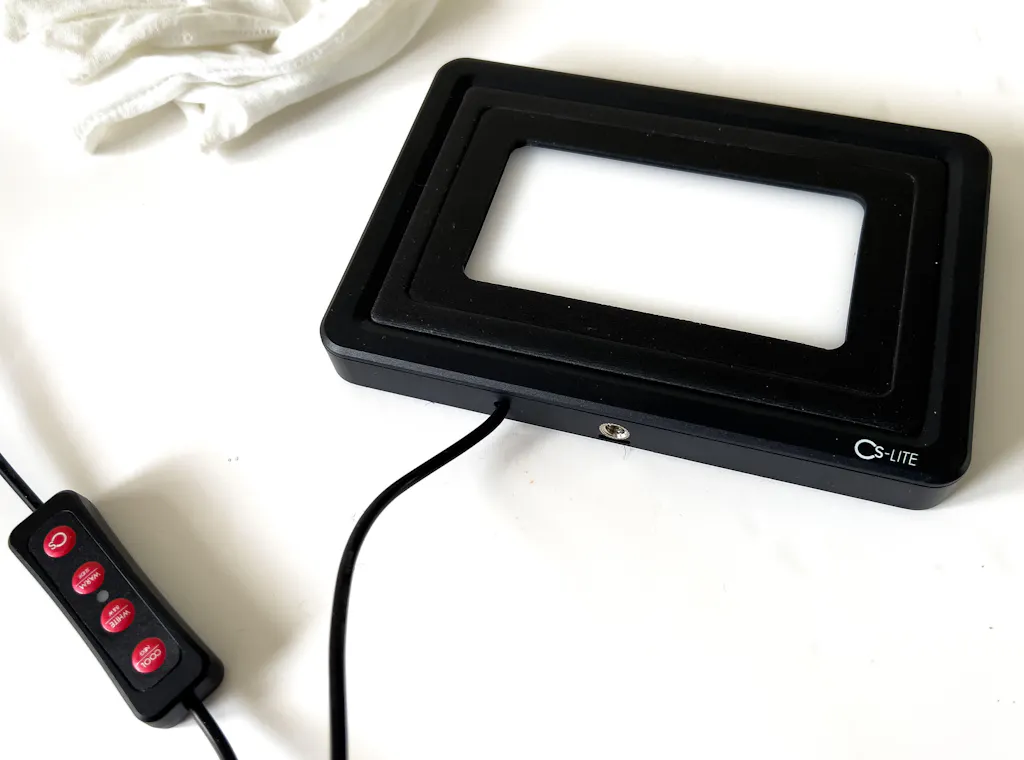 The CS-LITE features a CRI of 95+ for high colour accuracy and a brightness of EV 15+ to provide sufficient illumination for even the densest of negatives. What sets the CS-LITE apart from other light sources on the market is its ability to adjust colour temperatures to properly suit different types of film, such as colour negative, colour positive, and black and white. These are controlled directly from the built-in remote control of the CS-LITE.