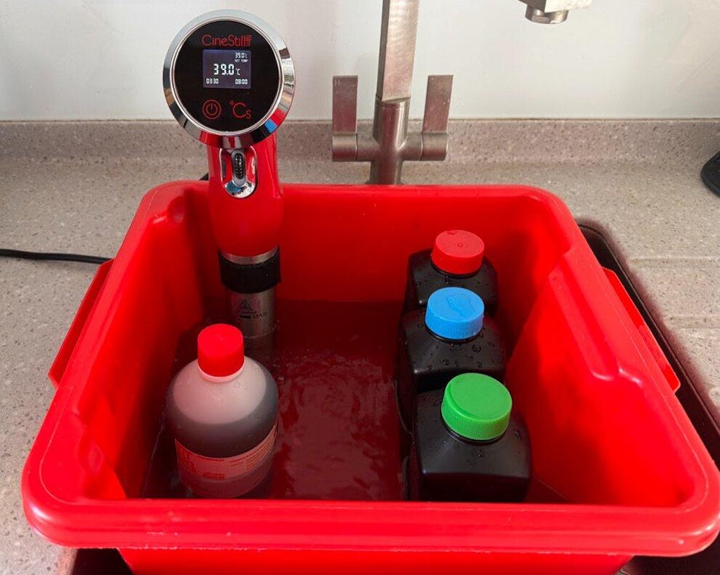 The °Cs "Temperature Control System" Cinestill TCS-1000 immersion circulator/thermostat is the simplest solution for precision film processing at home.