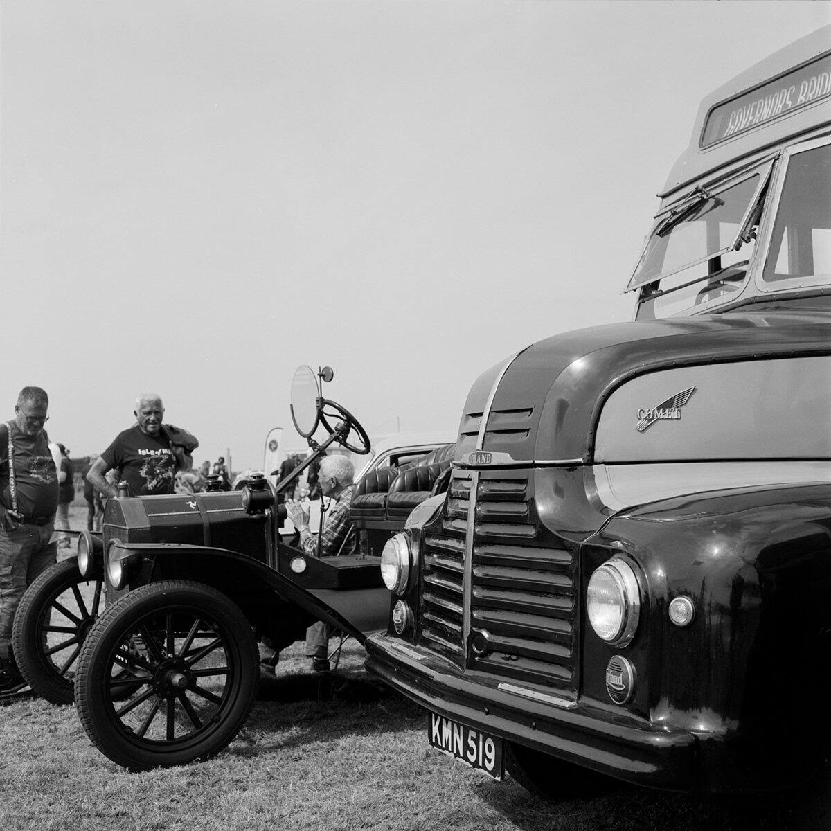 I hadn't used any Ilford Ortho 80 for a good while. This time around, a roll went in the Mamiya C220 for a classic bike and car event. The warm conditions saw plenty of folk in shorts and tee shirts. I wanted to see how skin tones would be rendered. The film can work rather well for this and I went out of my way to look for cars and bikes with red or orange colour schemes. Apart from being able to make these colours appear much darker and you'll get very fine grain shooting at box speed.